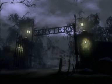 You don't know how you got here but you are standing in front of a cemetery. Looking around you realise that the shouting you heard was coming from the graveyard, or maybe it was just the wind. You stand and think for a second, and then decide that it would be better to see that everything was ok than have the feeling on your conscience.Walking up to the gates you gently push them and they swing open. .